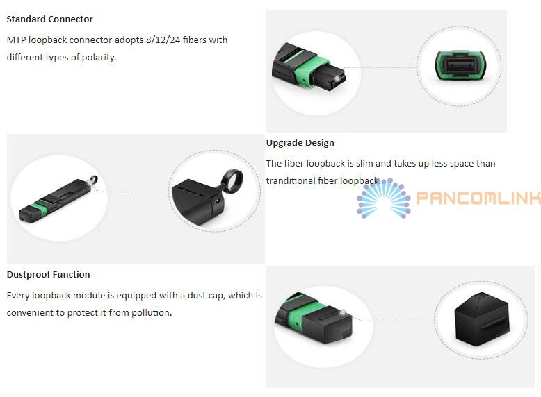 MTP/MPO loopback modules are used widely within testing environment especially within parallel optics 40G networks. Devices allow verification and testing of transceivers featuring MTP/MPO interface–40GBASE-SR4/CSR4 QSFP+ devices. Loopbacks are built to link Transmitter (TX) and Receivers (RX) positions of MTP transceivers interfaces. MTP/MPO loopbacks can facilitate and speed up IL testing of optical networks segments by connecting them to MTP/MPO trunks/patch leads.